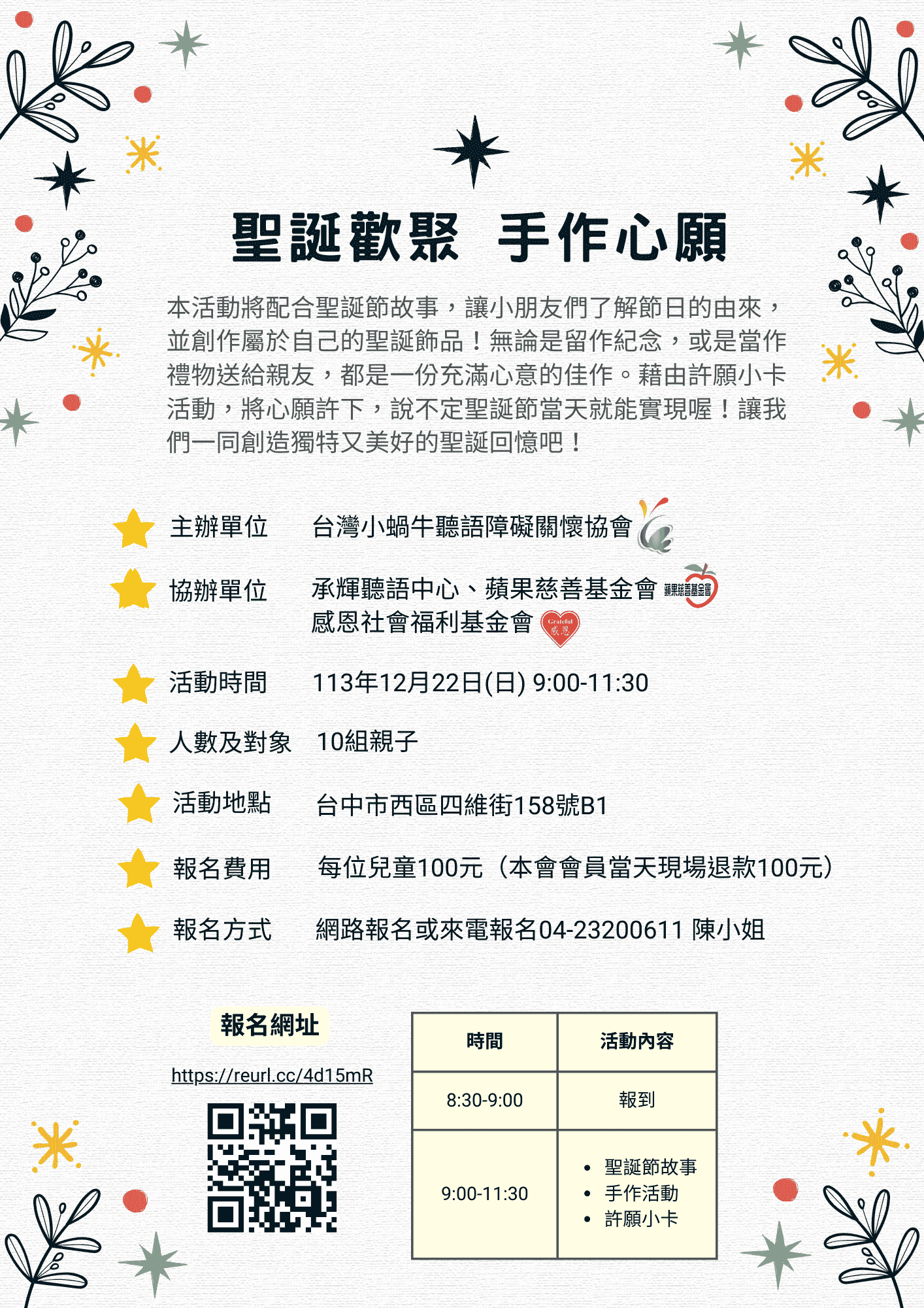♦活動日期:113年12月22日(日)9:00~11:30