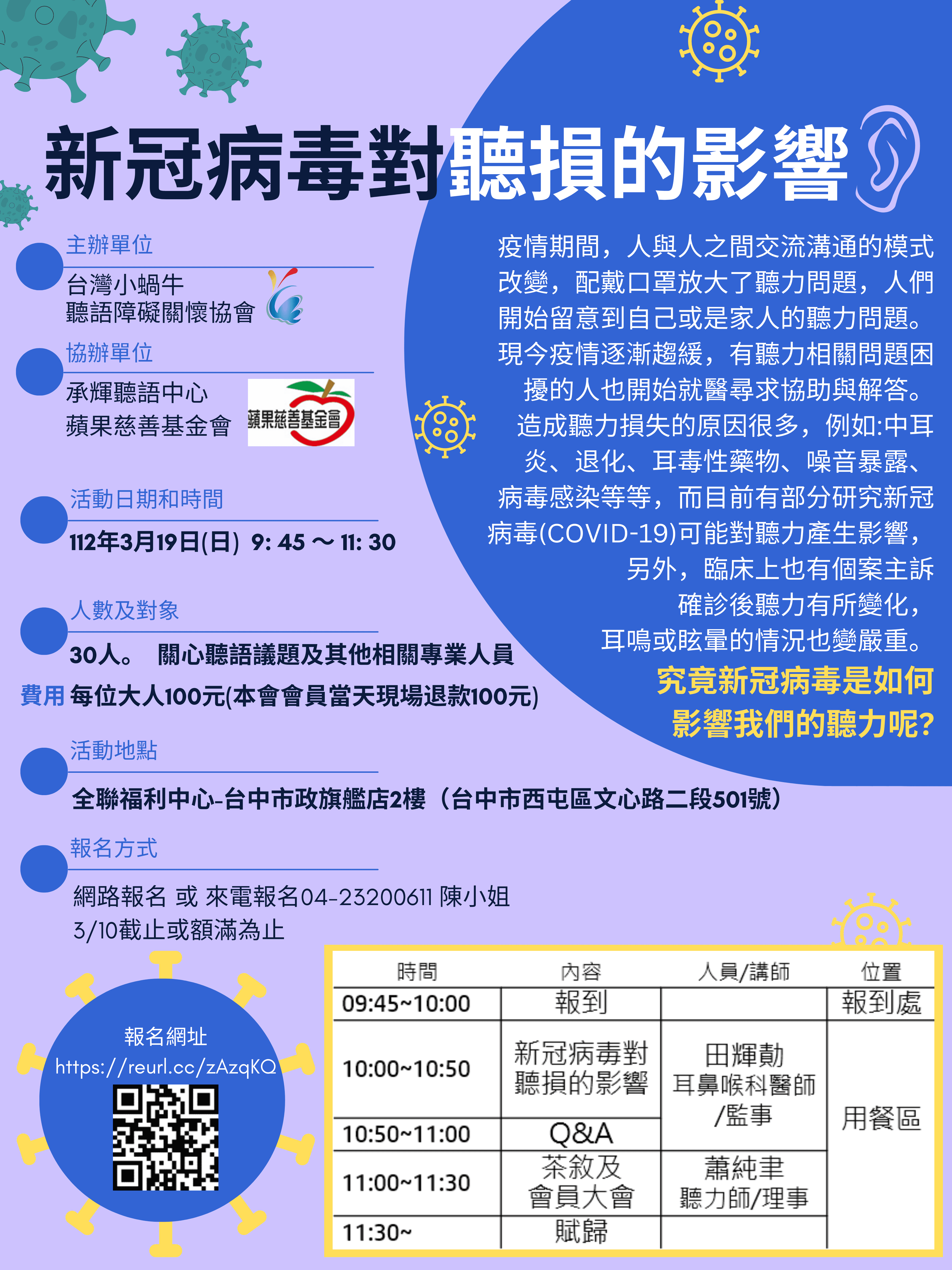 ♦主辦單位:台灣小蝸牛聽語障礙關懷協會