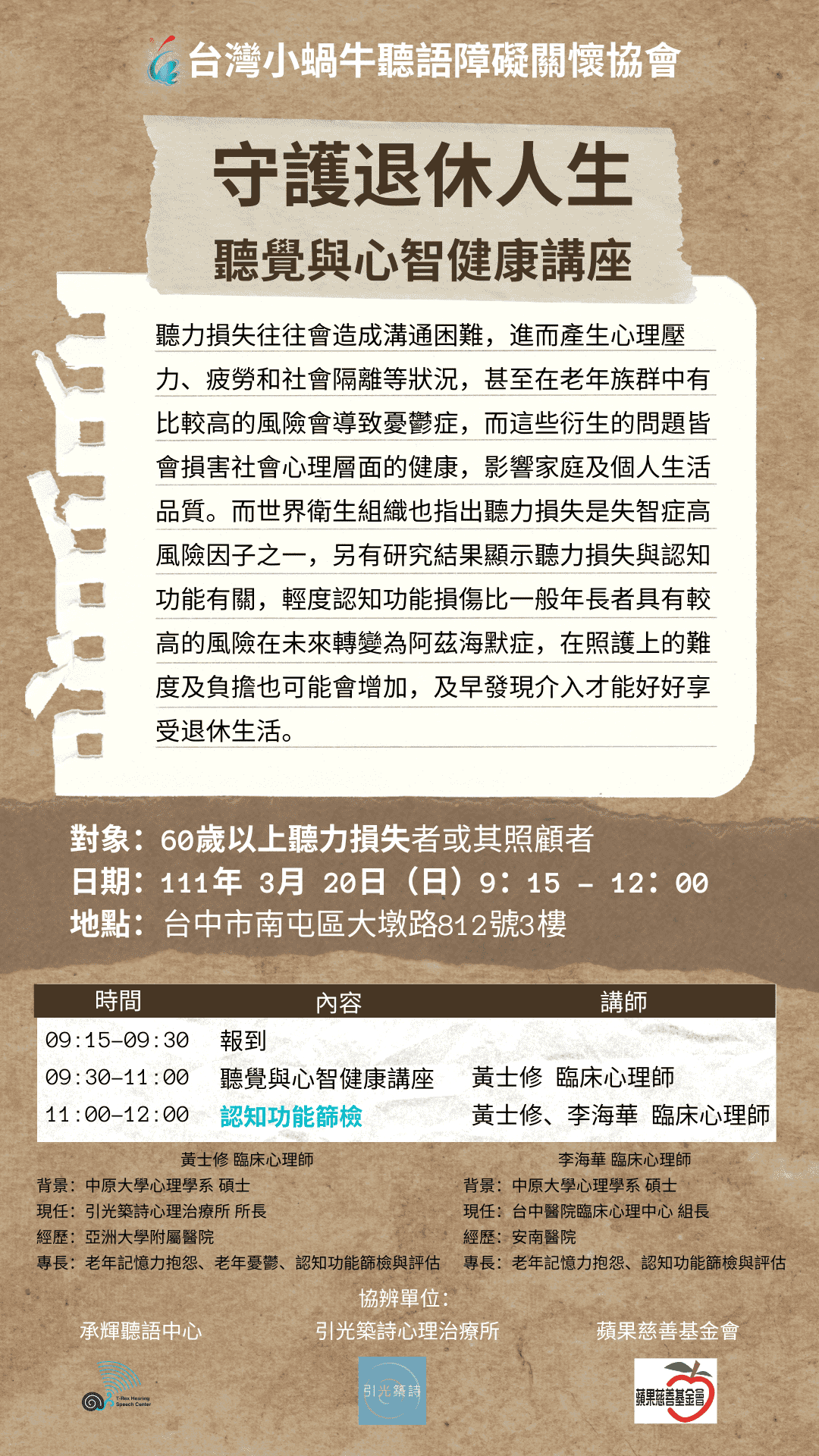 ♦主辦單位:台灣小蝸牛聽語障礙關懷協會